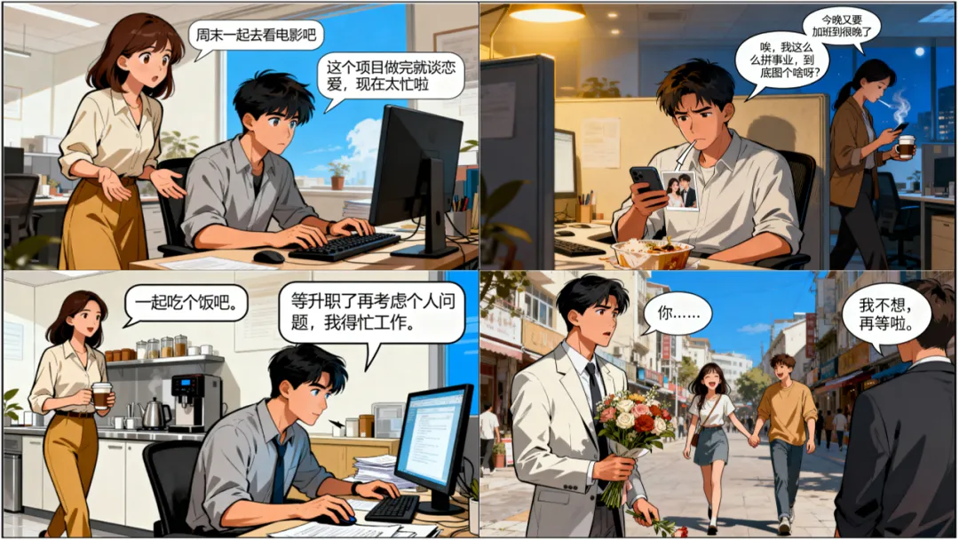 “这个项目做完就谈恋爱”“等升职了再考虑个人问题”——“事业脑”们总把爱情当成“以后再说”的事。他们把KPI当圣旨,加班时间成了努力的唯一标准,微信置顶永远是工作群呢,约会时眼睛也离不开电脑屏幕。