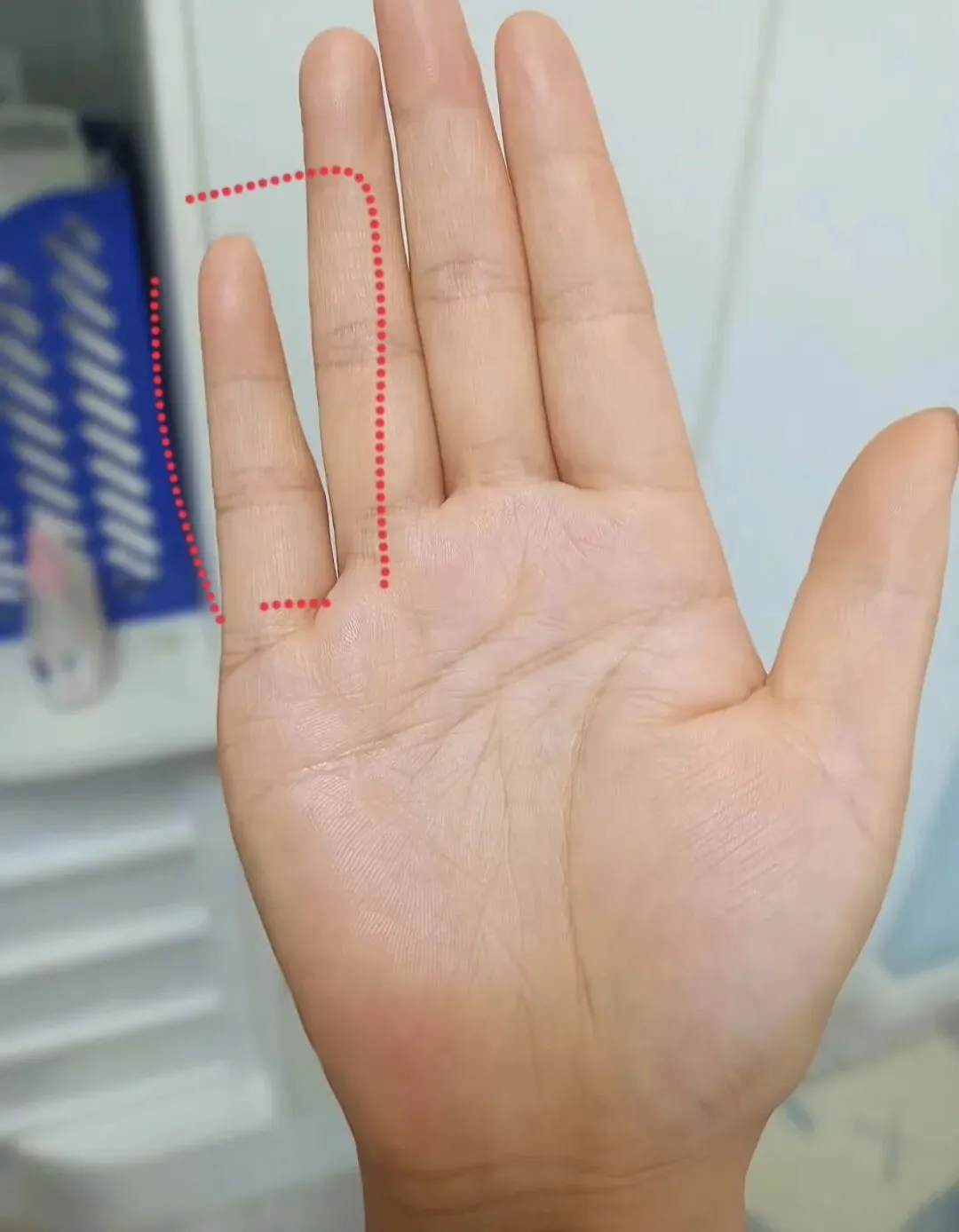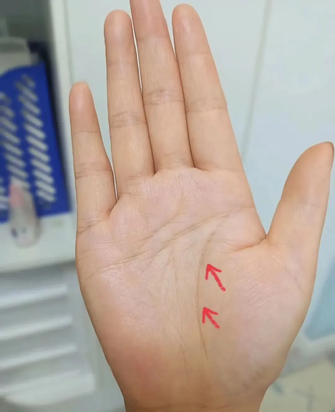 我们来看一下人文呢,人文当中由这个延伸到这里,有这个和这个天文啊重合的一个迹象,这也可以被称之为假断掌的一个现象。可以说呢这个人其实个人心思很直,但是心直口快这一点还是要注意,其实在这个说话的以及这个言谈当中,还是要过一下脑子,不要太无脑啊。这也是在感情当中体现出来的,容易上头也容易下头。可以看一下他地纹地纹呢,压力比较大,因为这个岛纹呢,和这个竖纹呢,可以看到很明显非常的重,说明他的一个脾胃这个压力还是非常的大,需要早点休息,内脏负担太大,这种容易失眠。