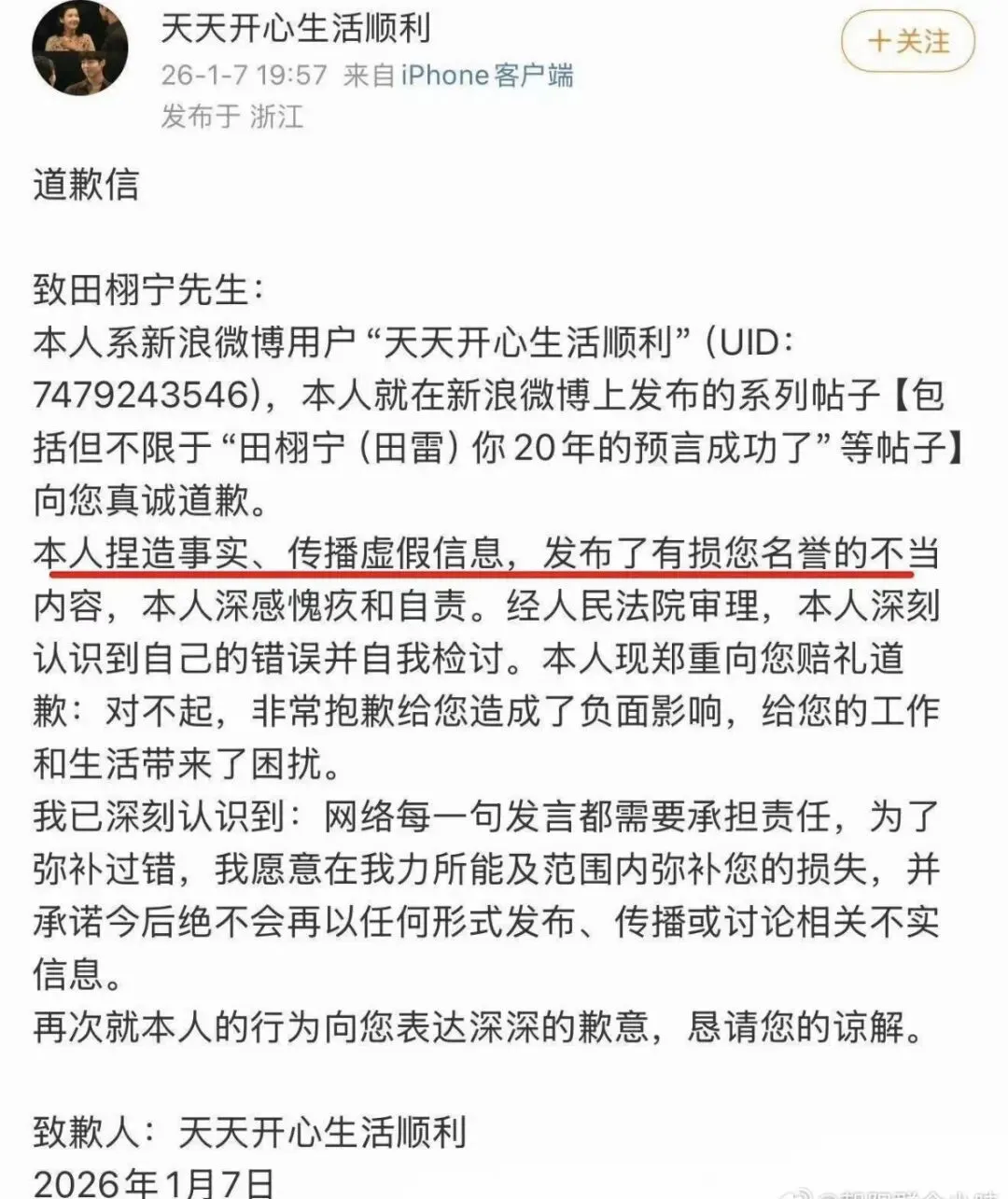 粉丝说上一个造谣自己跟田栩宁有孩子的嫂子,被证实是个男的😧已经公开道歉。