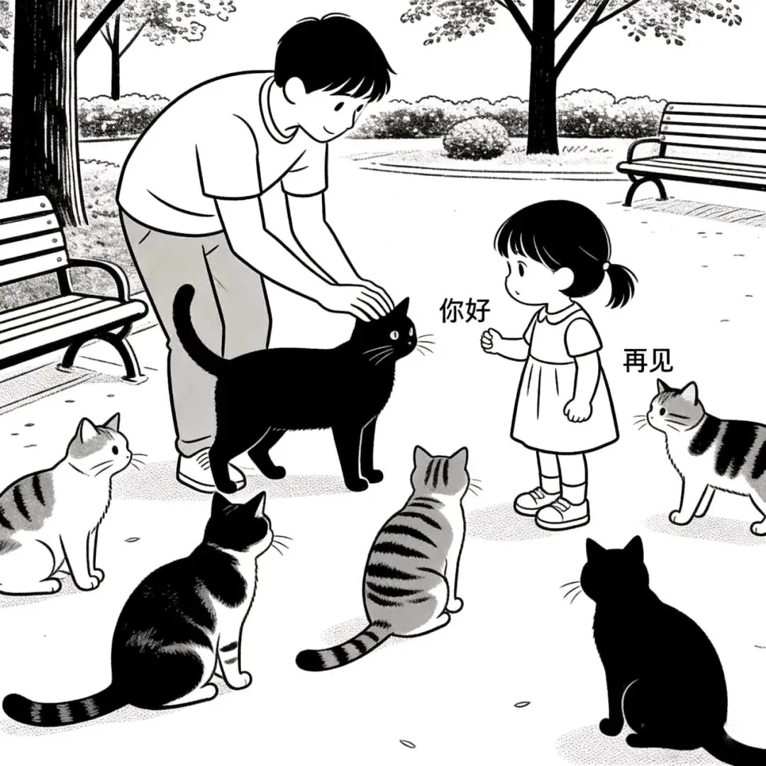 公园角落里有群流浪猫,保持着距离,又接受着善意。我们撩猫,也彼此观察。三岁的女儿学会了对每只相遇的小生命说“你好”和“再见”。有些温暖不属于你,但相遇本身就很美好。