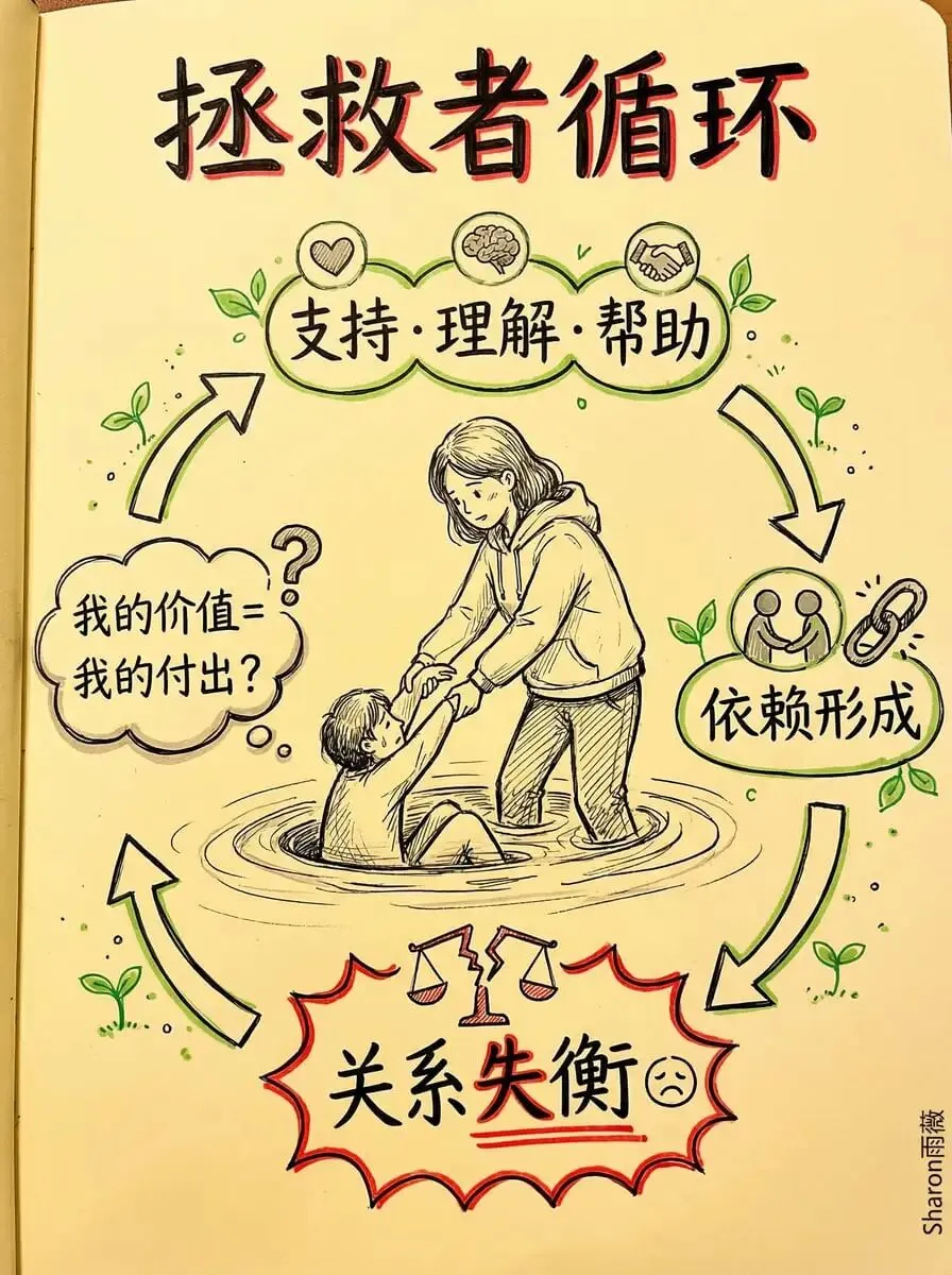 但问题其实不在强或弱。真正的问题是:你在关系里不自觉地进入了一个非常熟悉的位置——拯救者。