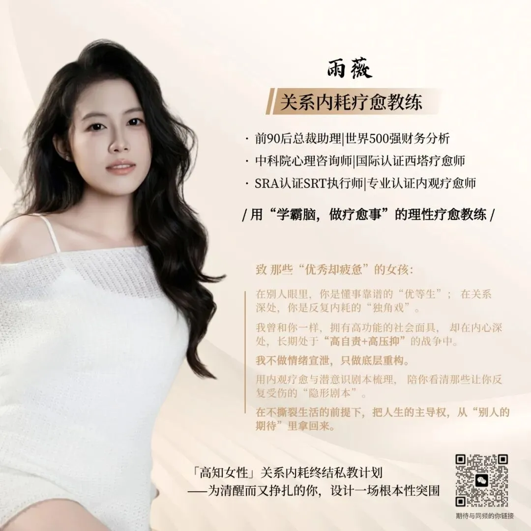 改变不是一个人埋头反思就能完成的事。如果你想认真看清这些关系剧本,我的「关系内耗终结私教计划」可以陪你走这段路,和你一起看清和改写旧剧本,开始尝试用一种新的方式去爱、去建立关系。