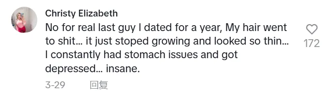 是真的,我和最后一个男人约会了一年,我的头发变得一团糟......头发停止生长,看起来很稀疏......我经常胃病发作,情绪低落......疯了。