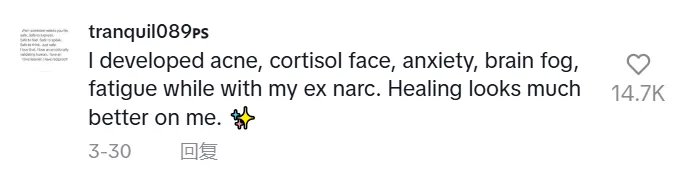 和自恋狂前任在一起时,我脸上长了痤疮、皮质醇脸、焦虑、脑雾、疲劳。现在我痊愈了,看起来也好多了。