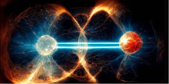 在量子世界里,有一对“纠缠粒子”。无论它们相隔多远,当你观测其中一个的状态发生改变时,另一个也会瞬间发生同样的改变。爱因斯坦称之为“鬼魅般的超距作用”。