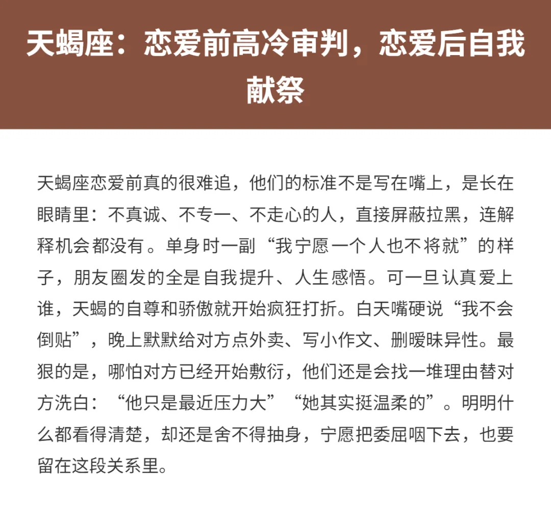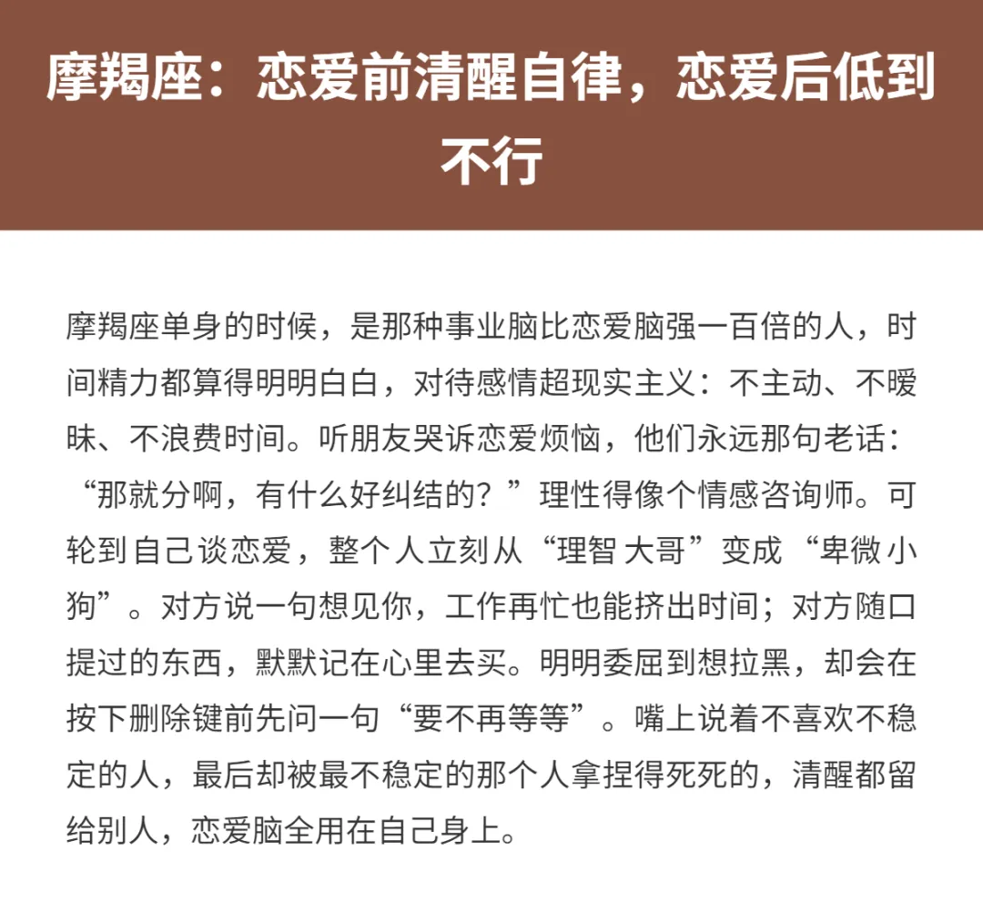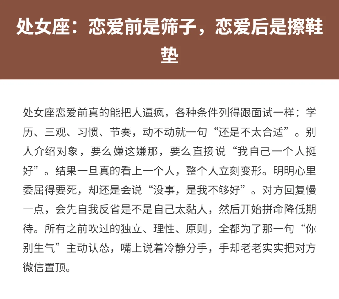 有一种人,恋爱前挑三拣四,嘴上嫌得要死,恋爱后直接坠入尘埃里,下一秒就能给对象跪下唱征服。朋友一劝就说自己“清醒”,结果只要对方回个消息,立刻原地破防,什么原则底线全当没说过。尤其某些星座,谈起恋爱真的像被洗脑,从“谁都配不上我”秒变“我不配打扰你”。别不承认,你身边一定有这种典型:恋爱前高冷难追,恋爱后各种查手机、秒回消息、主动低头道歉。今天就来好好扒一扒,那些恋爱前嘴硬宇宙第一,恋爱后卑微到尘埃里的恋爱脑星座,看看到底有没有你。