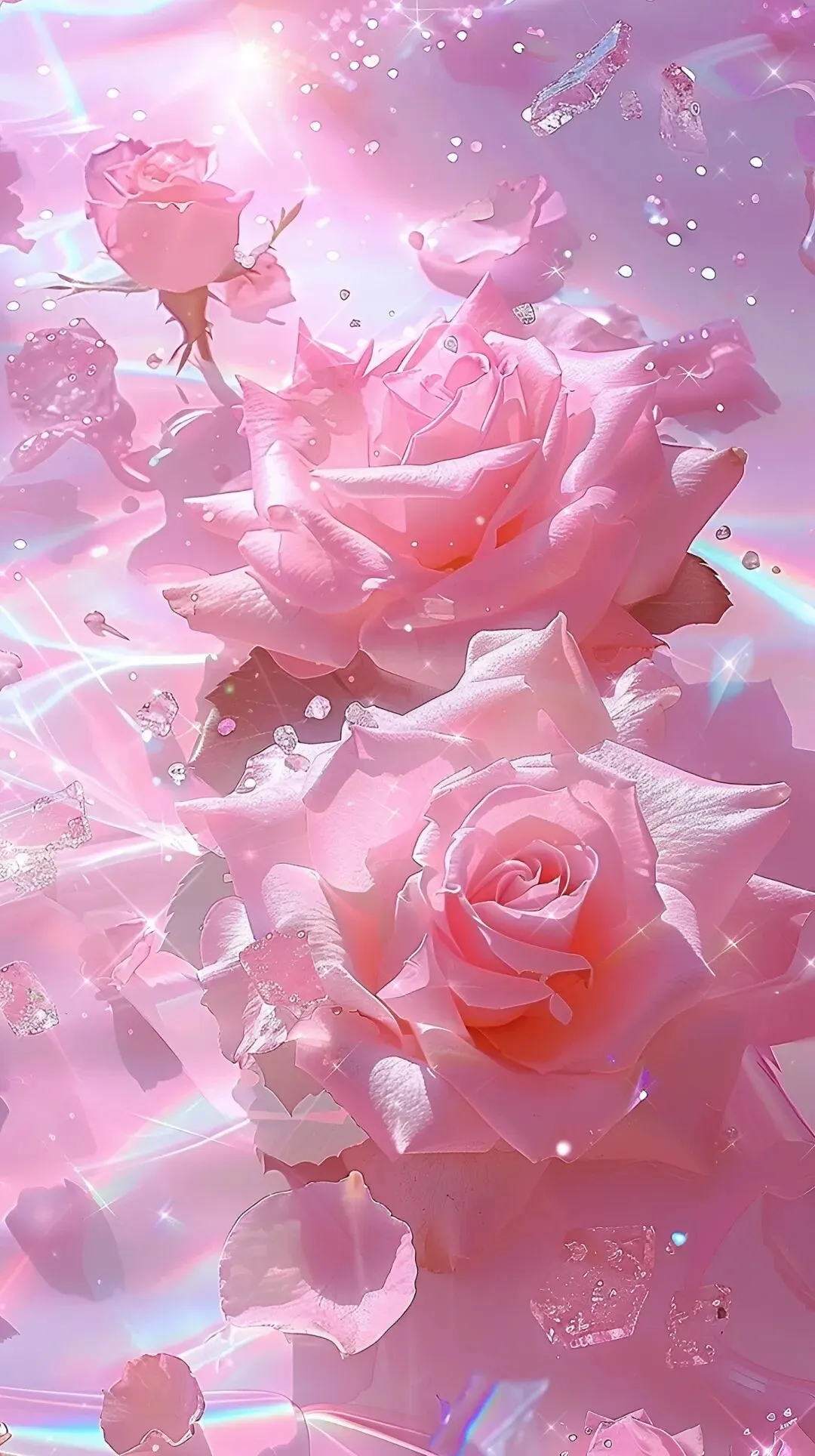 白色情人节浪漫氛围壁纸:粉色玫瑰与星光背景这个白色情人节,你收到糖果了吗?