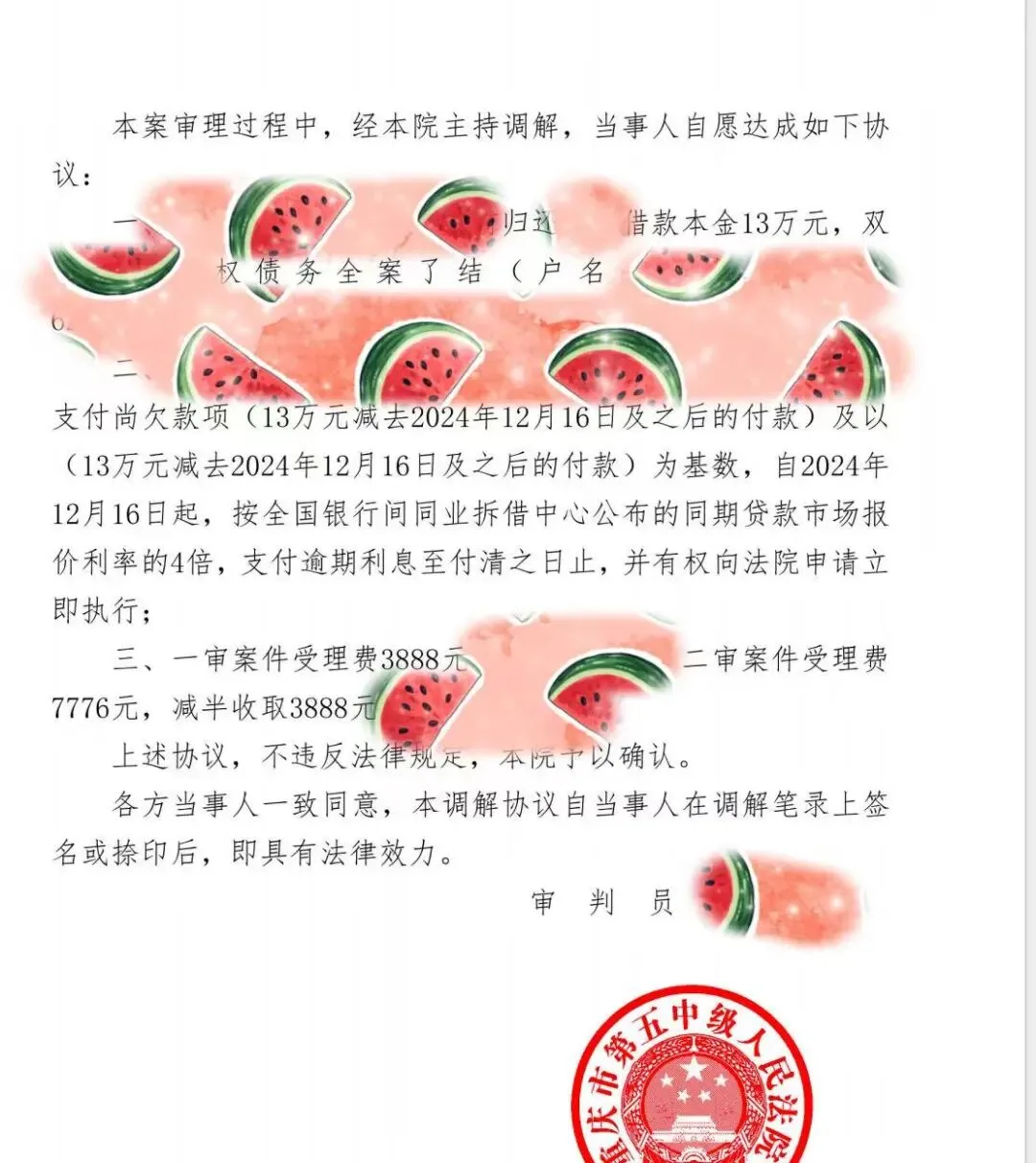 经过笔者针对本案提交的类案报告,以及结合司法实践,于庭审中陈述的代理意见,最终代表被告与原告之间达成一致调解,由被告承担38万多的还款责任调解至13万元,取得了较好的二审结果。
