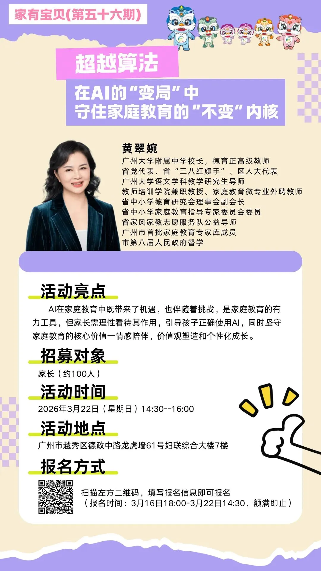 在广州市妇联的精心策划与推动下,即将启动“羊城父母学堂”第五十六期活动。