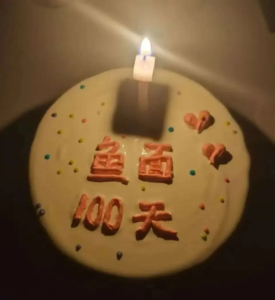 她在满屋的纸箱和狼藉里,拎回来一个精致的小蛋糕,上面画着“100”的奶油。