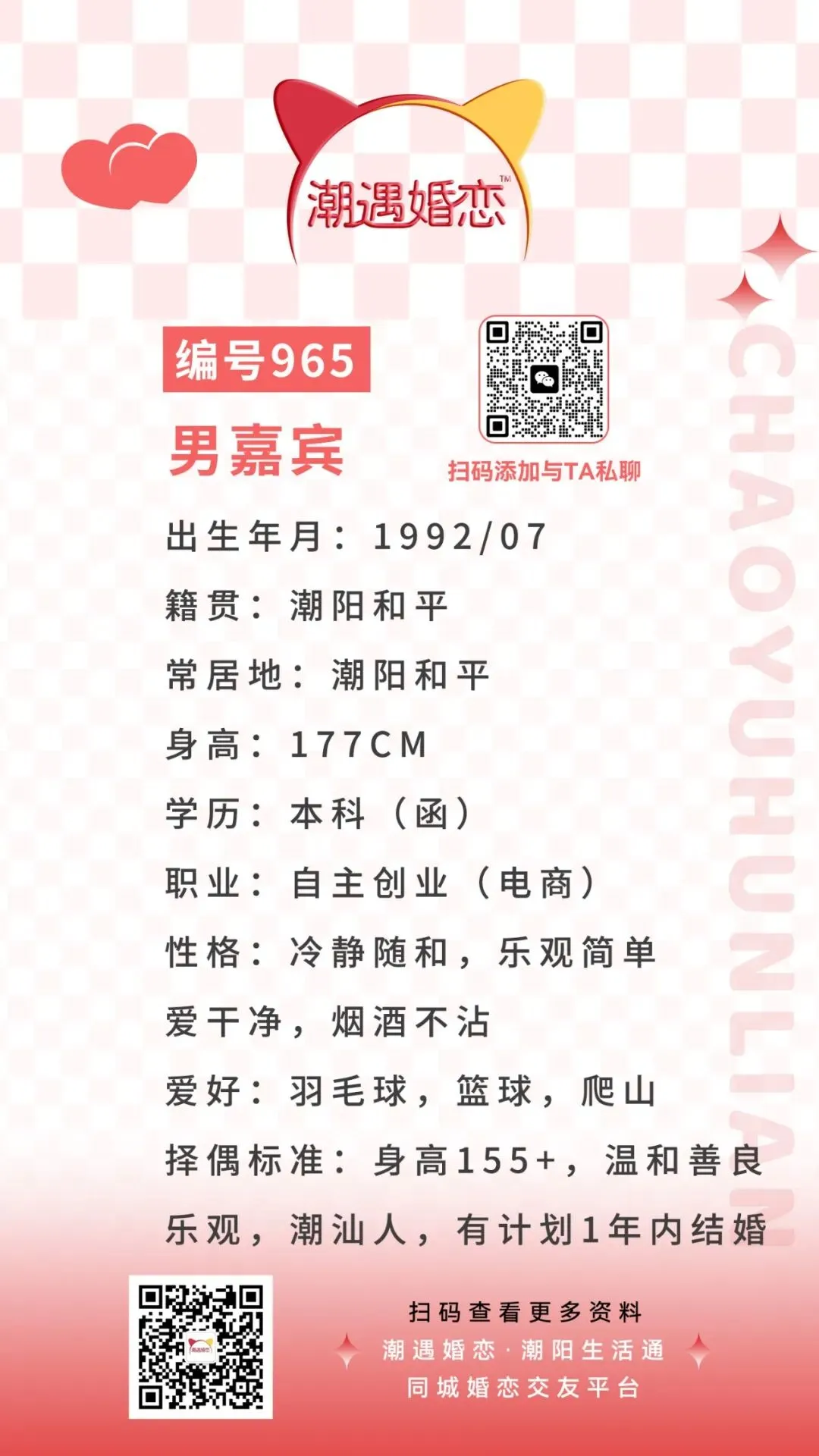 潮遇婚恋交友卡片·本期男嘉宾编号:965号