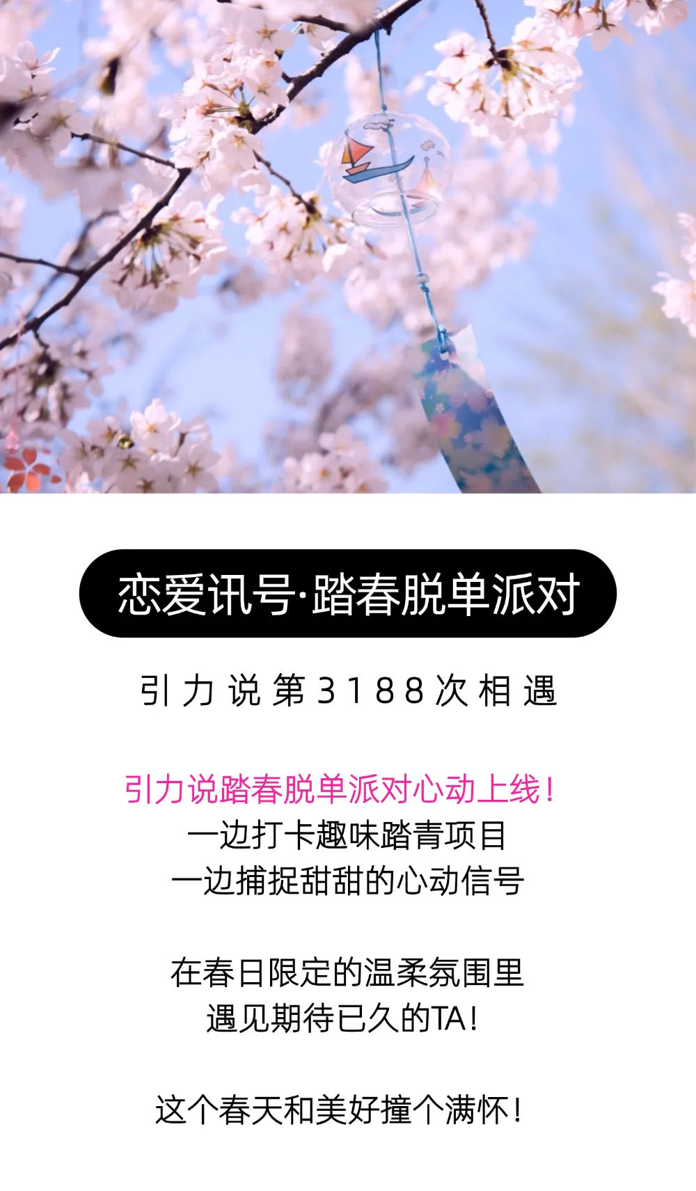 恋爱讯号·踏春脱单派对!3月22日,这一次,让相遇不负期待!