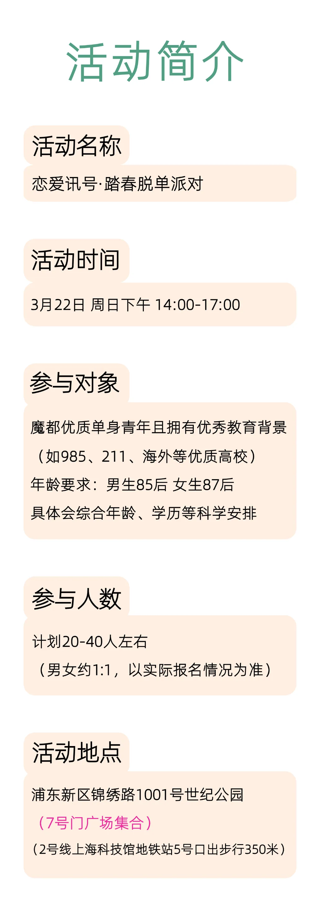 3.22周日下午14:00 恋爱讯号 踏春脱单派对