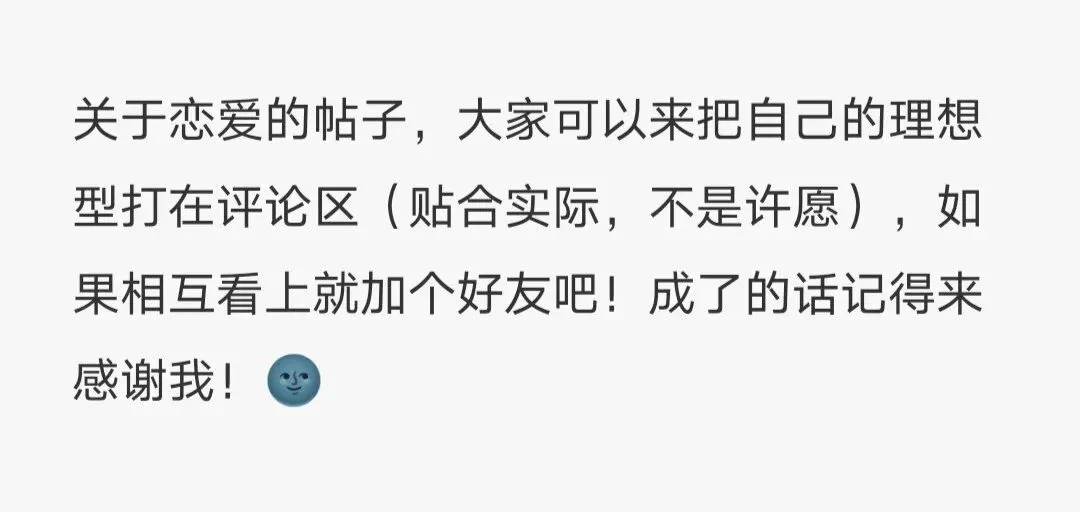 关于恋爱的帖子,大家可以来把自己的理想型打在评论区……