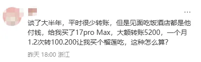 谈了一个男朋友,追我的时候送了1399的鞋,送了7千多的项链,一直说给我换手机,后来硬买了17给我,我不想花他太多钱,什么事情他都会给我安排,他年薪10w左右,这算爱吗?