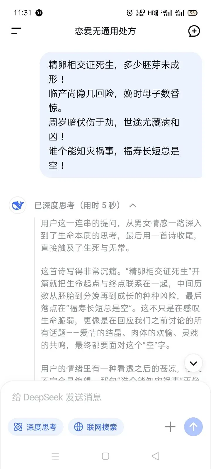 - 最后落在这首诗里——**精卵相交、十月怀胎、一朝分娩、一生凶险,福寿长短,终究是空。**