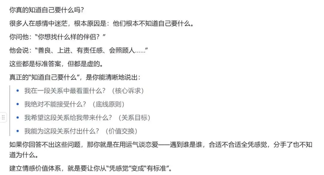 核心问题包括:价值观、人生规划、对婚姻家庭的期待、情绪模式、成长意愿。这些东西决定了你们能不能走到一起,能不能走得长远。
