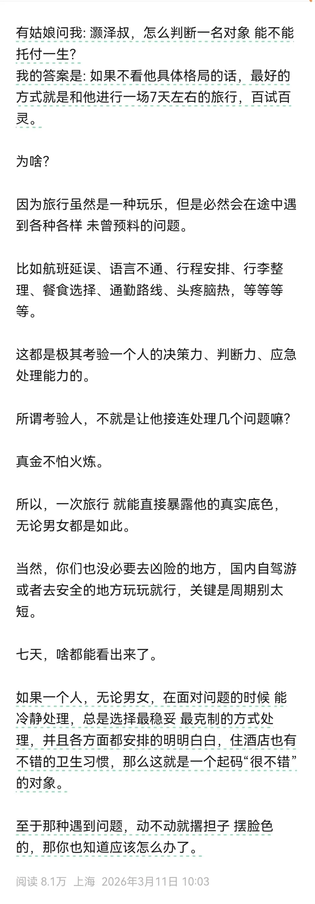 跟我爸妈或者弟弟出门,我都是什么都被照顾好的那个,但跟我男友一起,我都是被动跟着的人。