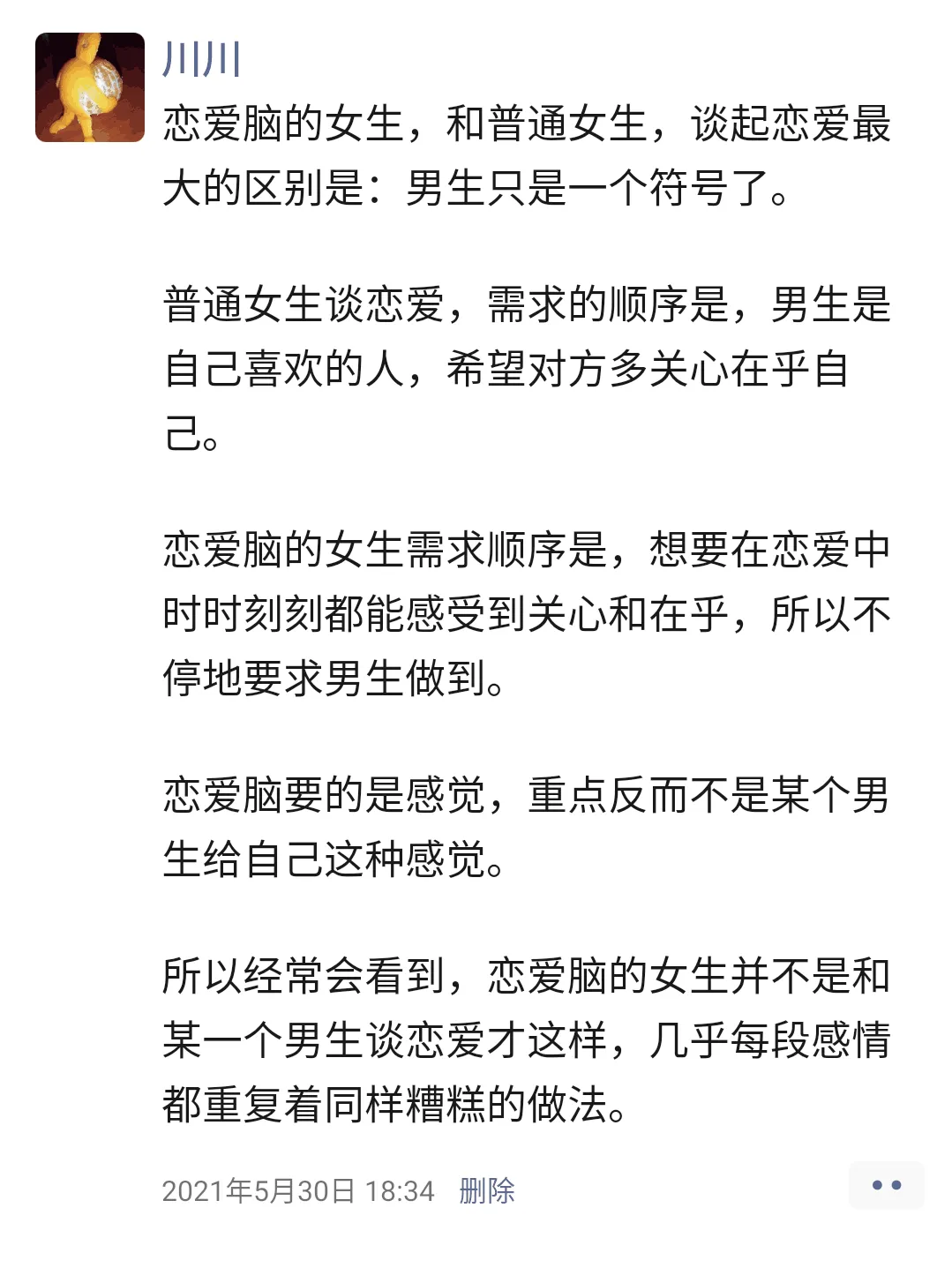 恋爱脑的女生,和普通女生,谈起恋爱最大的区别是:男生只是一个符号了。