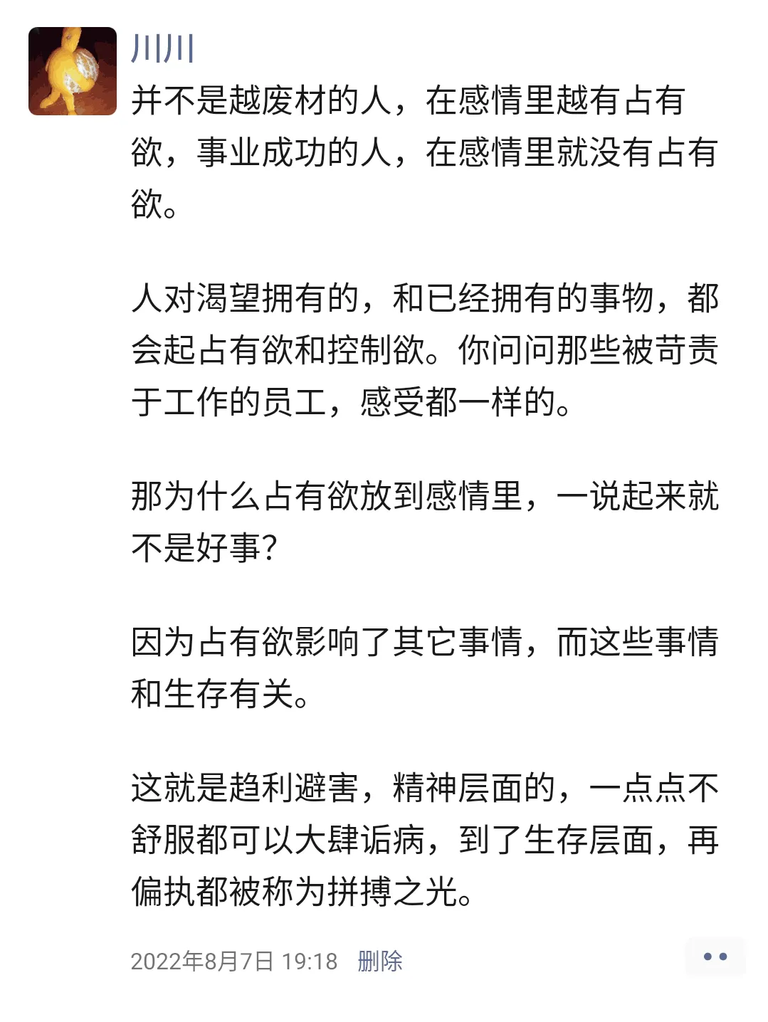 并不是越废材的人,在感情里越有占有欲,事业成功的人,在感情里就没有占有欲。