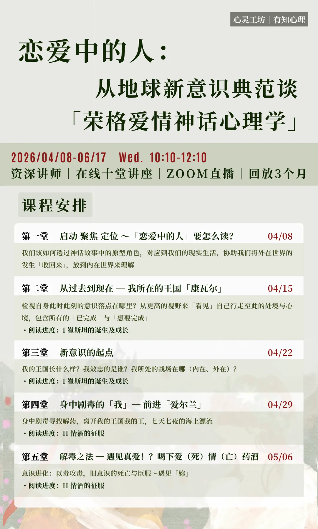 课程将透过崔斯坦新英雄之旅的四个阶段、十堂课来进行。