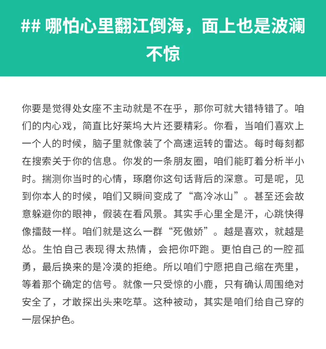 作为一个处女座,咱们在感情里那可是出了名的“憋死人不偿命”。