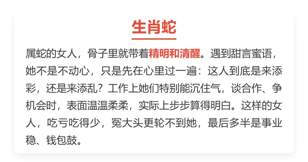 我这些.年见过太.多姑娘,把心思.全耗.在别.人身上,最后.委屈的.是自己。可也有一.类人,天生就不爱把命.运拴在.感情.上,脑子清醒,手脚利落。咱们.今天.就聊聊,哪三大生.肖女,偏偏.是不恋.爱脑、只搞事.业,结果越活.越有.底气。