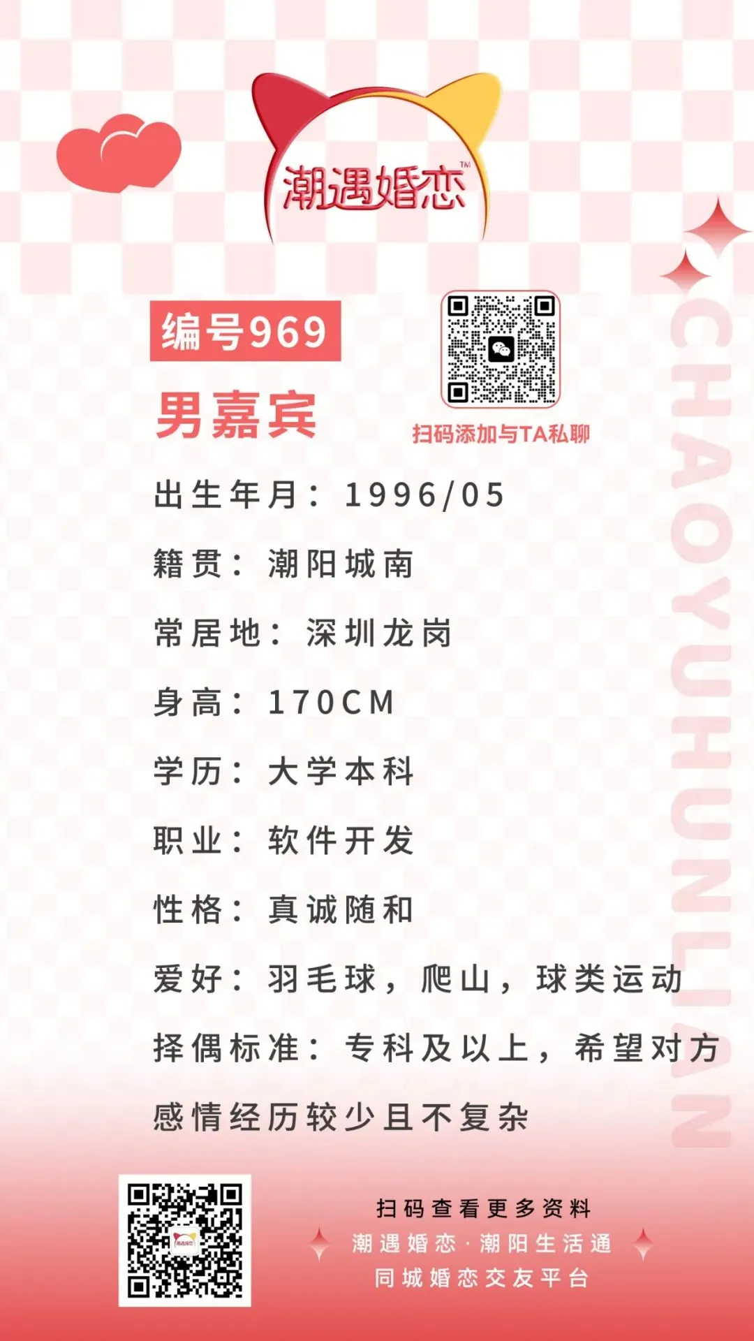 潮遇婚恋|(编号969)棉城男子,96年,择偶标准…