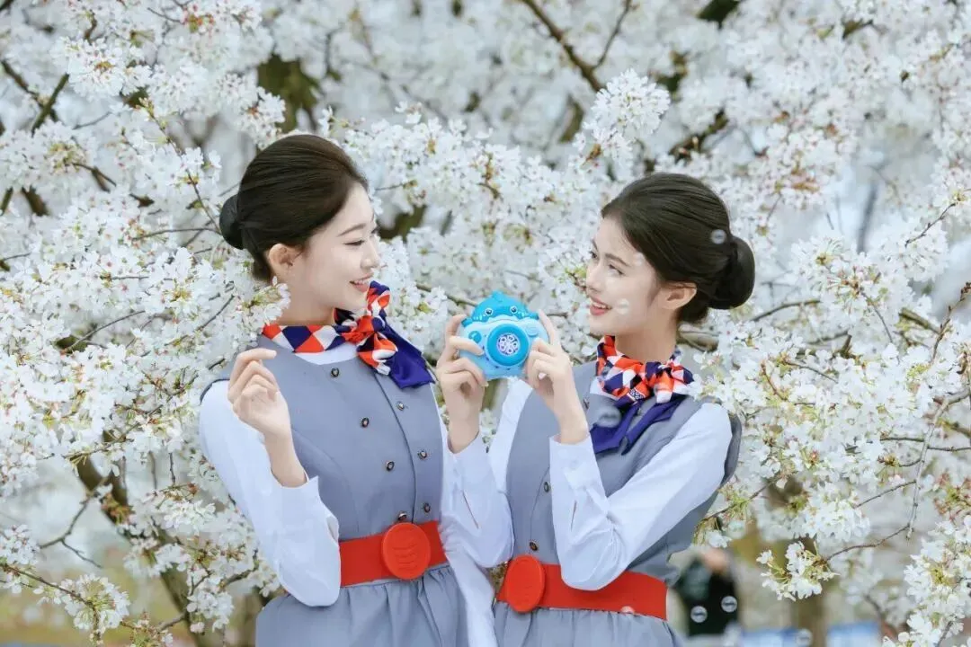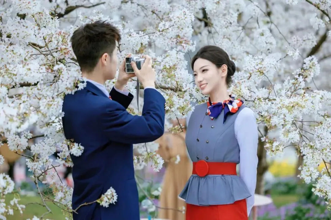 意味着每年3月底到4月初,都会有一大批准空姐、准空少走出校园,涌向全国各地的赏花景点。樱花树下、油菜花田里、青山绿水间,到处都是这些颜值与气质并存的专业选手!
