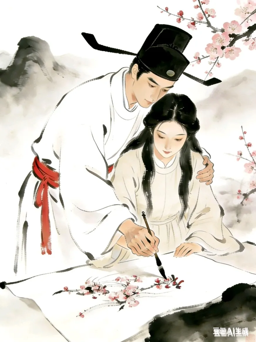现实中,我和他的字儿都不好看。我们倒是立过志要好好练习书法,但画面并没有AI中这么唯美。我们像两个小学生,对着字帖临了三个晚上。腰疼,脖子疼,眼睛干,手指疼,手腕疼,小指和袖口都是墨渍,桌上一堆烂摊子互相推诿着不想收拾。第四个晚上我们心照不宣地谁也没再提练书法的事。