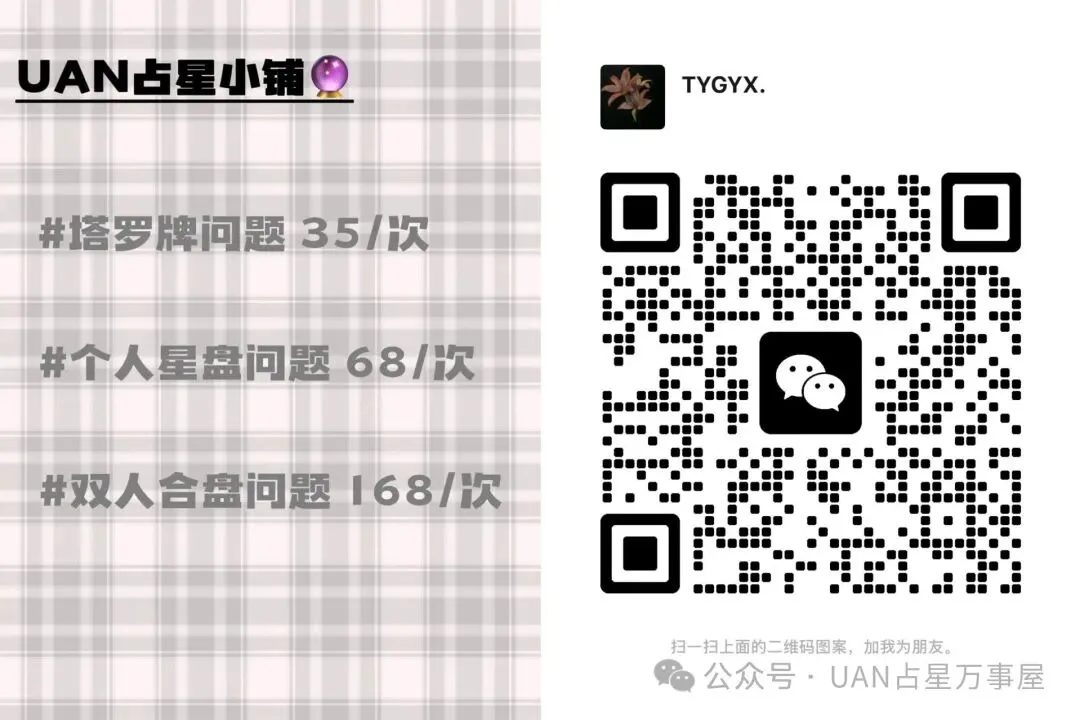 如需星盘解析、恋爱、婚姻、金钱、事业等方面咨询、塔罗问题、长按识别二维码添加