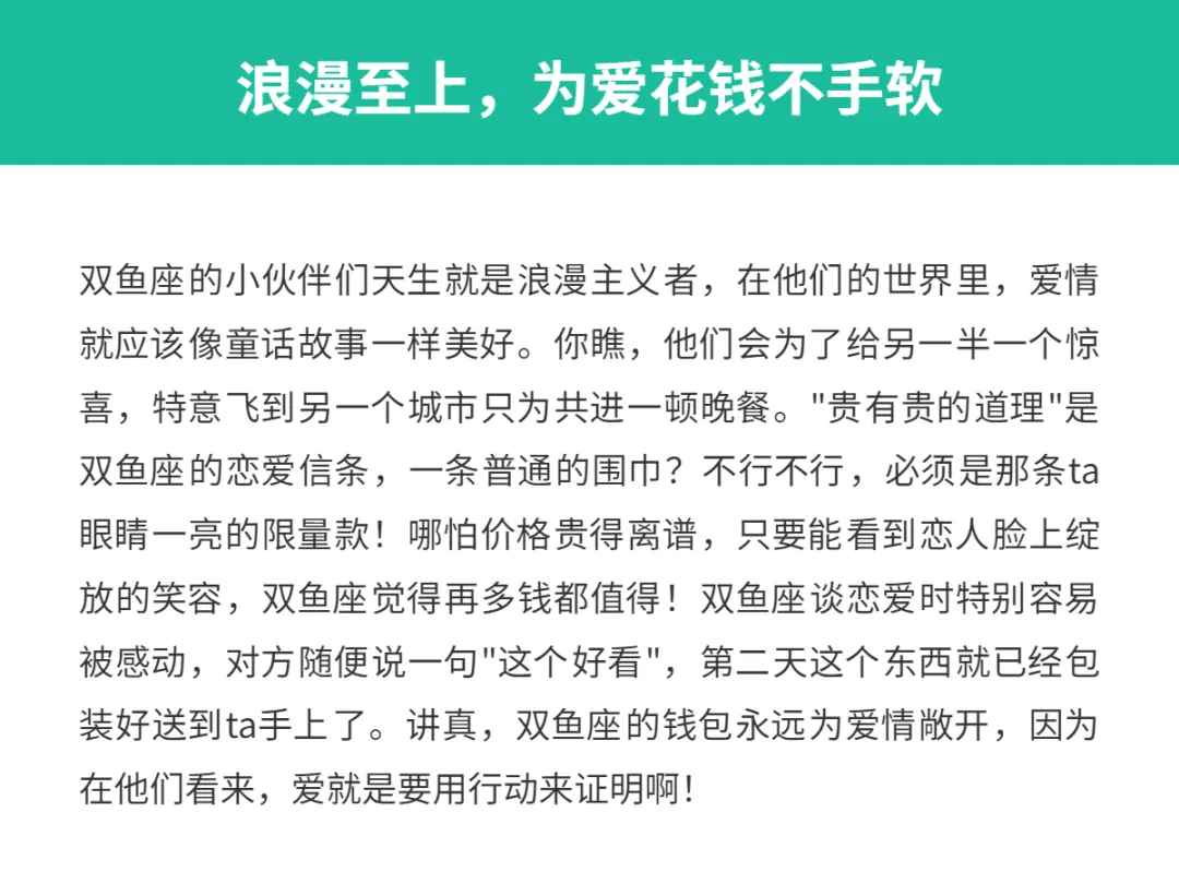 亲爱的星座朋友们,你知道吗?在十二星座里,说到恋爱最烧钱的星座,双鱼座绝对能拿下第一名!