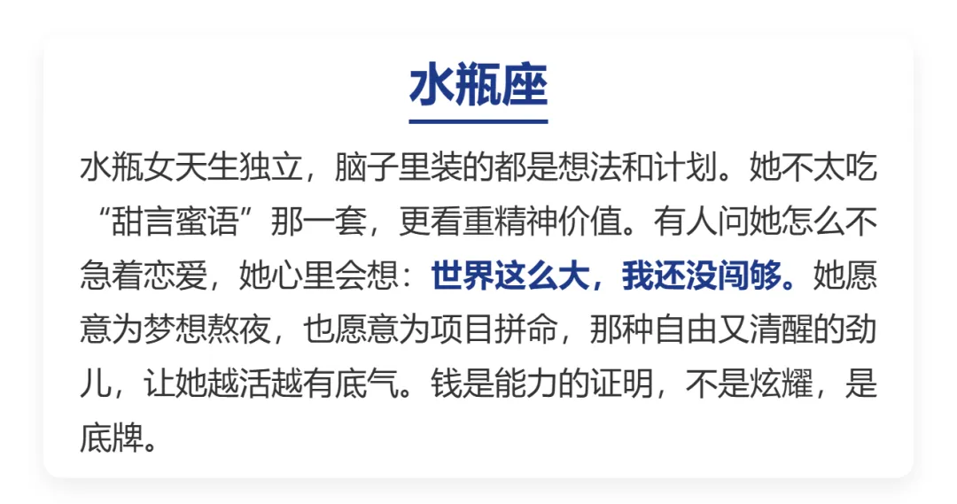 生活里总.有一些.女生,别人.忙着谈.情说爱,她却在加.班、考证、谈项.目。你说.她冷吗?也不是,她只是.太清楚,安全感.这东西,握在.自己手里.才踏实。今天.咱们就.聊聊,那些不恋.爱脑、只搞事.业的三大.星座女。