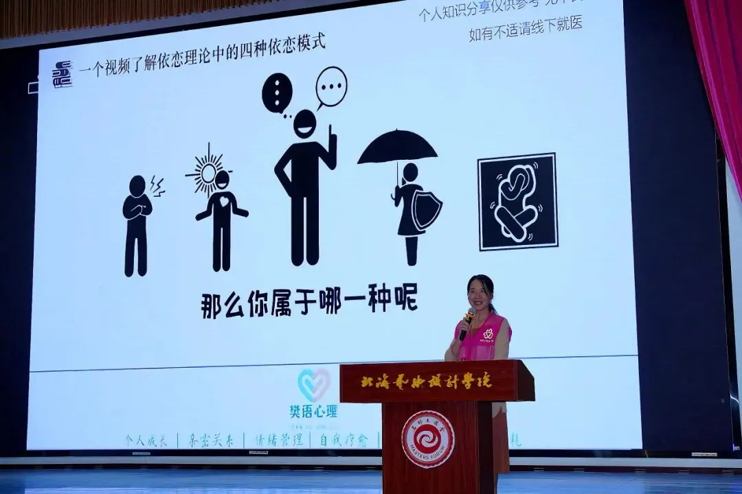 此次讲座分为婚恋观引导与法治教育两大板块,内容兼具理论深度与实践指导性。第一板块由国家三级心理咨询师、中级沙盘游戏咨询师,广西家庭教育研究会理事、北海市家庭教育讲师团成员莫长华老师授课。她围绕“你的价值不取决于别人对你的评价”等核心观点展开暖心分享,引导学生建立独立自信的自我认知,深刻剖析了青春情感中易出现的自我迷失问题。她强调在亲密关系中保持自我本色、坚守内心边界的重要性,鼓励大家拒绝盲目迎合,以从容姿态面对情感中的起伏与挑战。