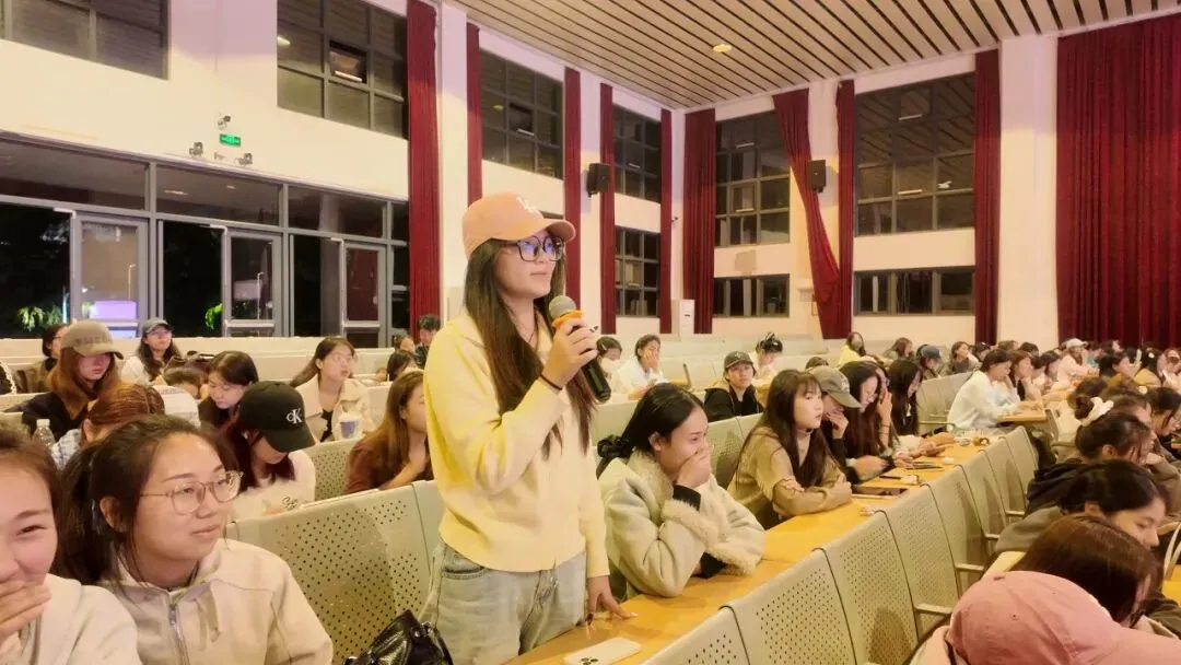 为增强互动性与实效性,讲座设置了互动游戏、情感困惑分享、现场问答等环节,同学们积极参与、坦诚交流,在轻松融洽的氛围中深化了对情感相处之道的理解,有效缓解了情感困惑。活动现场氛围热烈,学生纷纷表示,此次活动不仅帮助了大家树立健康理性的婚恋观念,还提升了情感认知与自我保护意识。