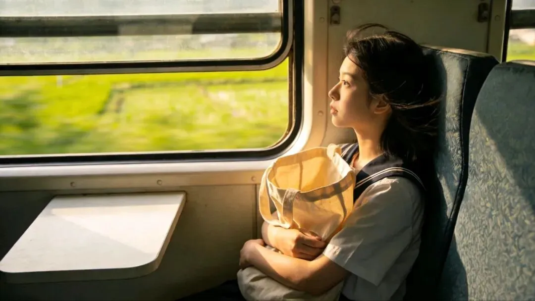 火车开动的时候,我把脸贴在车窗上。