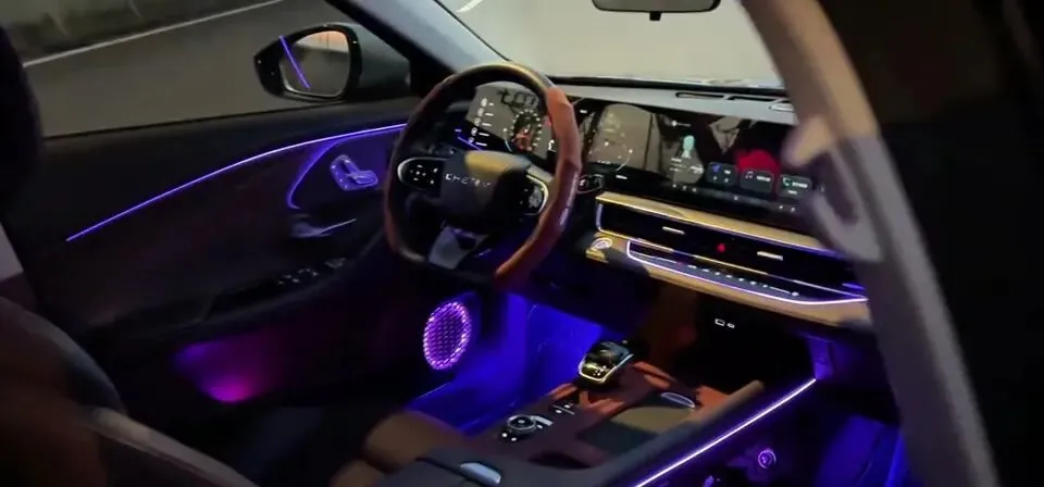 上车了兄弟们。先说一个氛围感,氛围灯这个效果一开,确实有点“越级”。我现在坐进来,眼睛扫一圈,科技感挺直接。