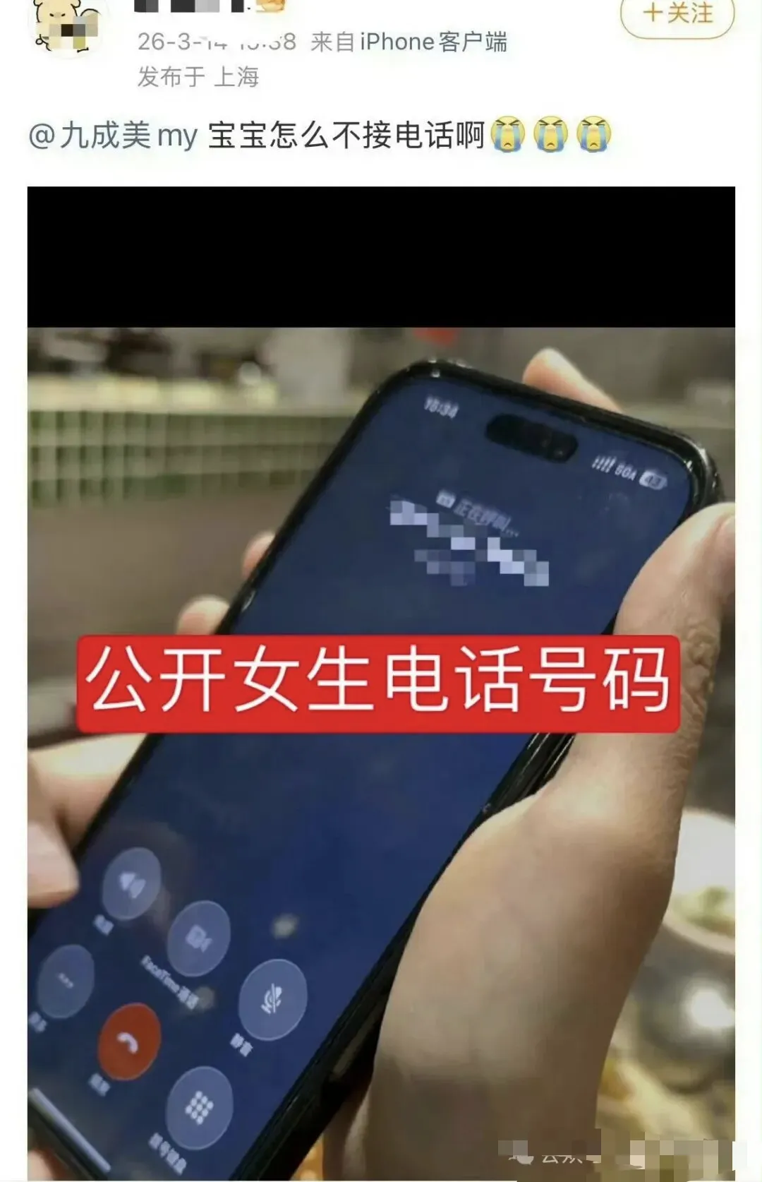 更让人气愤的是,分手后的九成美,还遭到了若若的持续骚扰,微信辱骂、个人信息被曝光。