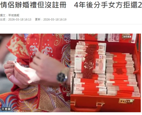 据《香港01》3月18日报道称,一对情侣虽未办理结婚登记,但按习俗办了婚礼、共同生活4年并生育一女,分手后男方起诉要求女方返还礼金,法院最终驳回其全部诉求。该报道并非源于当天新发生案件,而是对最高人民法院1月9日发布的第三批涉彩礼纠纷典型案例的再次转述;最高法当时明确,双方未登记但已长期共同生活并生育子女的,不能仅因未登记就机械要求返还全部彩礼,需综合考量共同生活时间、子女抚养、彩礼用途和双方过错等因素。研判认为..........。(全文4617字,文章结尾附参考链接)。