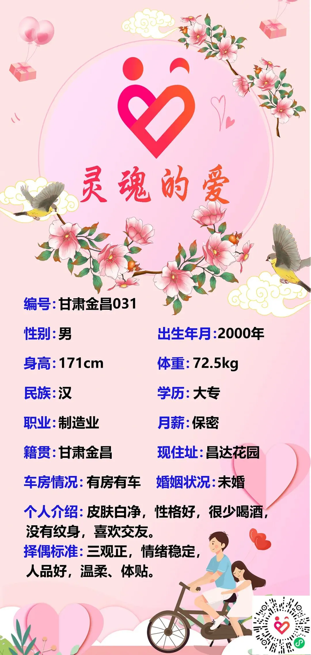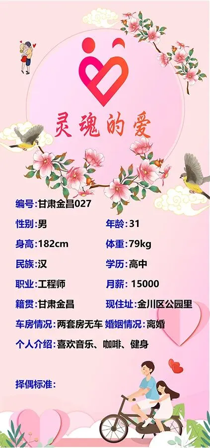本公众号仅负责发布婚恋信息,不对婚恋信息内容的真实性、准确性及合法性进行核实。男女双方需自行核实对方身份及信息真实性,本公众号不承担任何因交友引发的争议和纠纷。