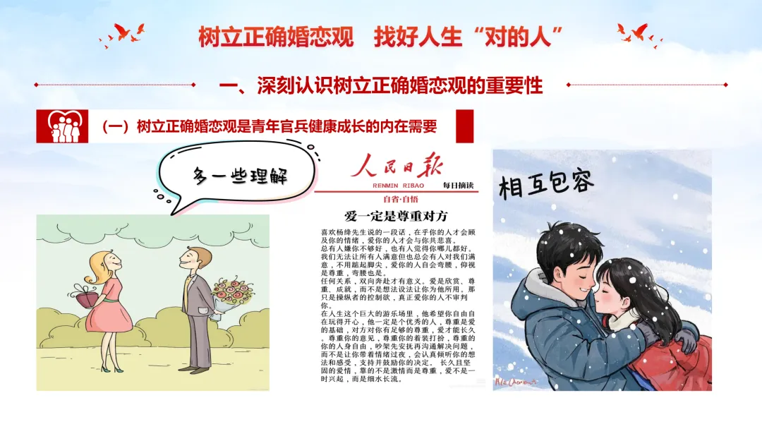 【经常性思想教育 | 关于海 |婚恋观(三) 40分钟】树立正确婚恋观 找对人生“对的人” PPT+讲稿+2个小视频
