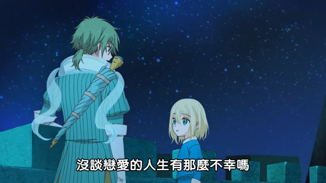 就像前面说得一样,恋爱是一门学问和技术,自然在很多情感方面的作品中是必不可少的文戏。但如果你把不必要的内容写得过于深入那么自然会出现【莫名其妙】或者【没有必要】。比如在第十二话中,讲述风魔法师的恋爱的时候就直接“一笔带过”,将这份恋情直接变成了风,然后吹散。给人的感觉就是:既说了黑魔法师不能谈恋爱,也说了他的感情,可谓是用简单的话语直截了当的表明黑魔法师们的恋爱和如何处理它。