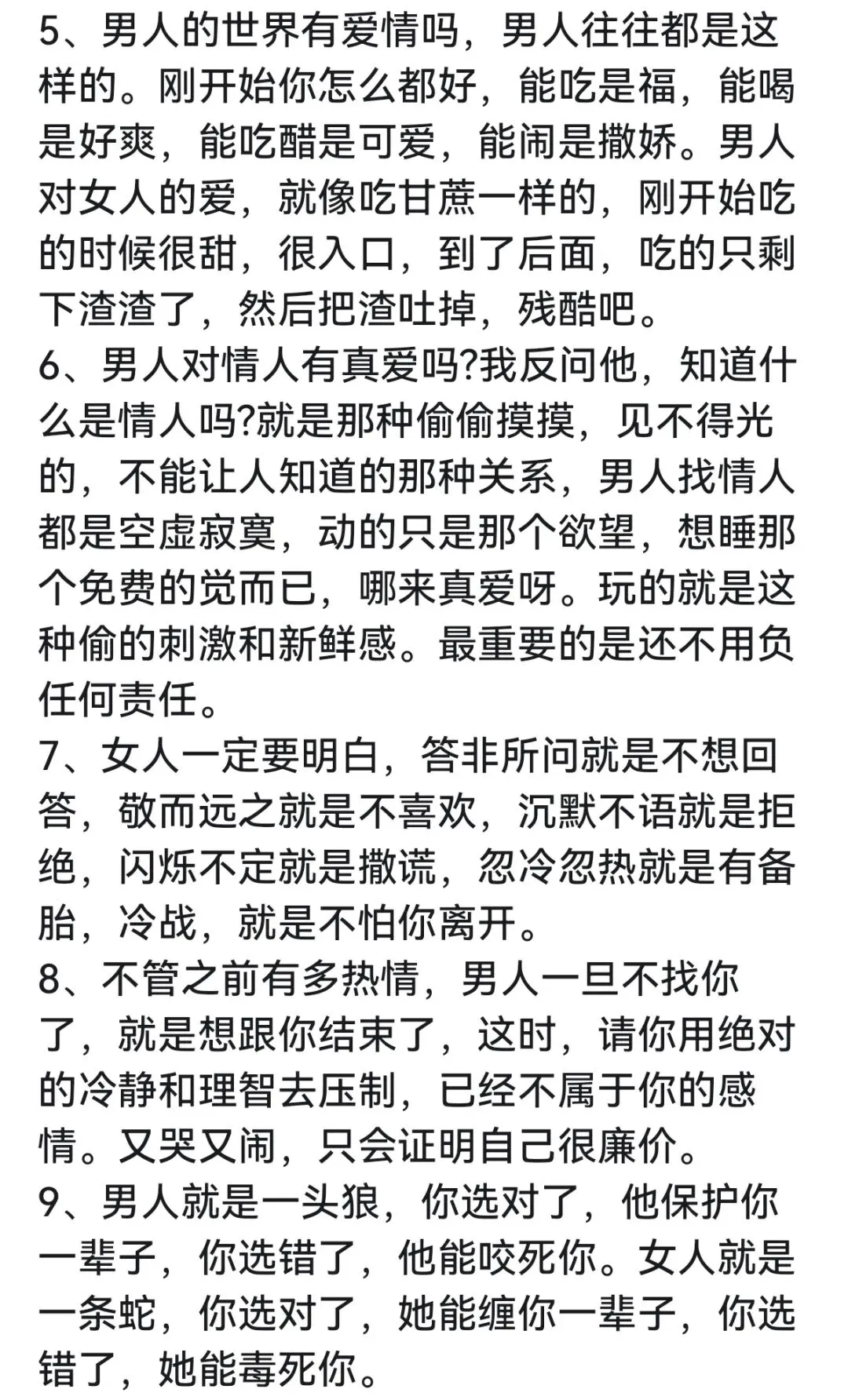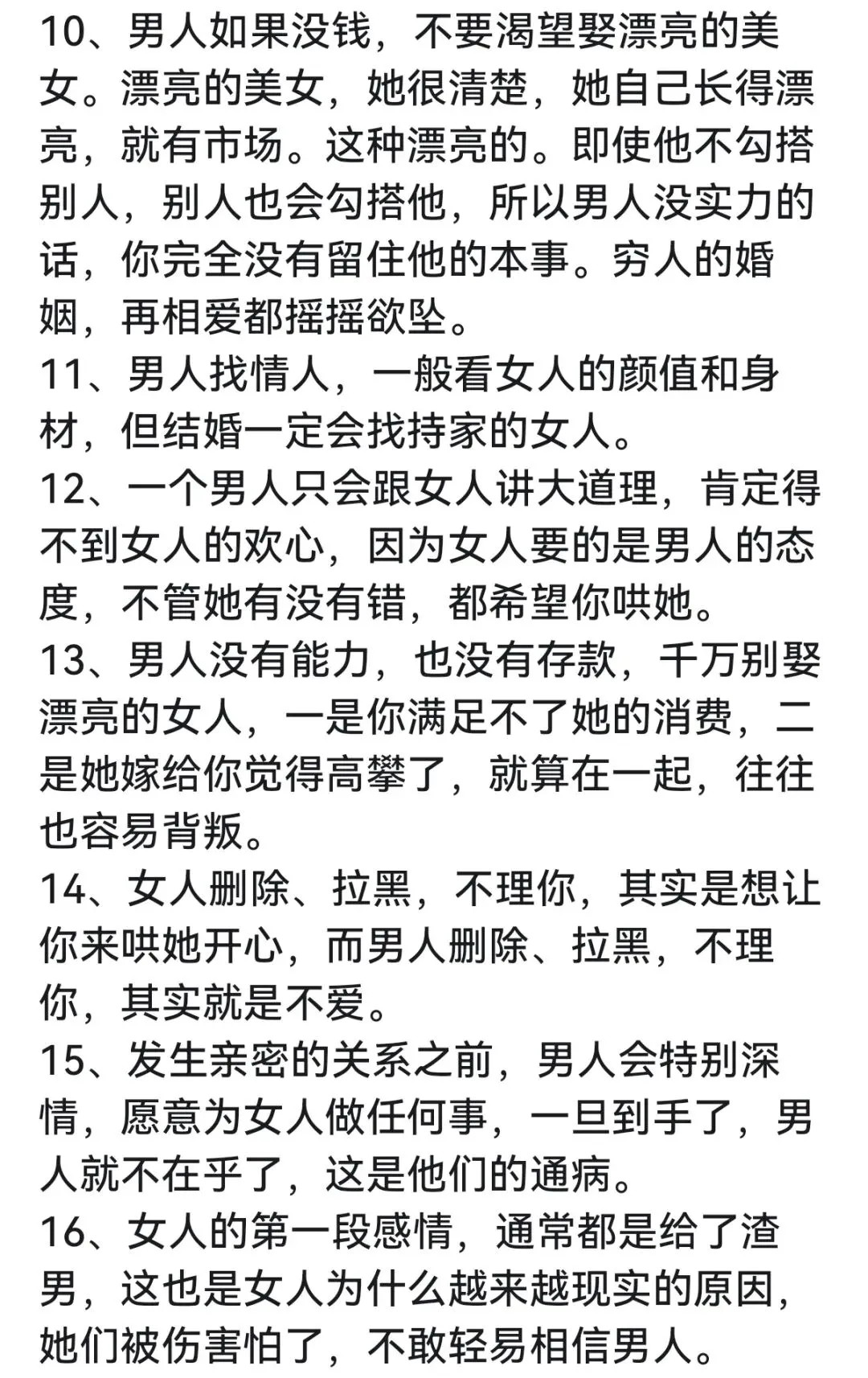 【婚恋】男女扎心情感真象