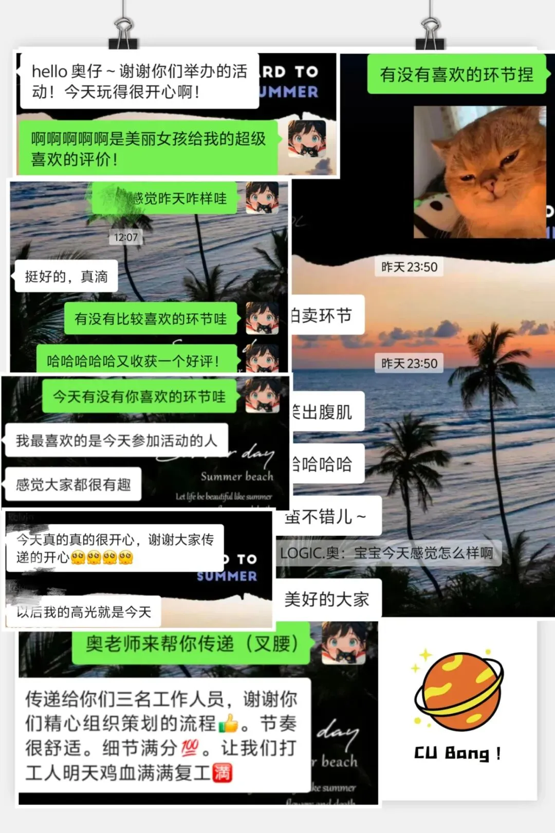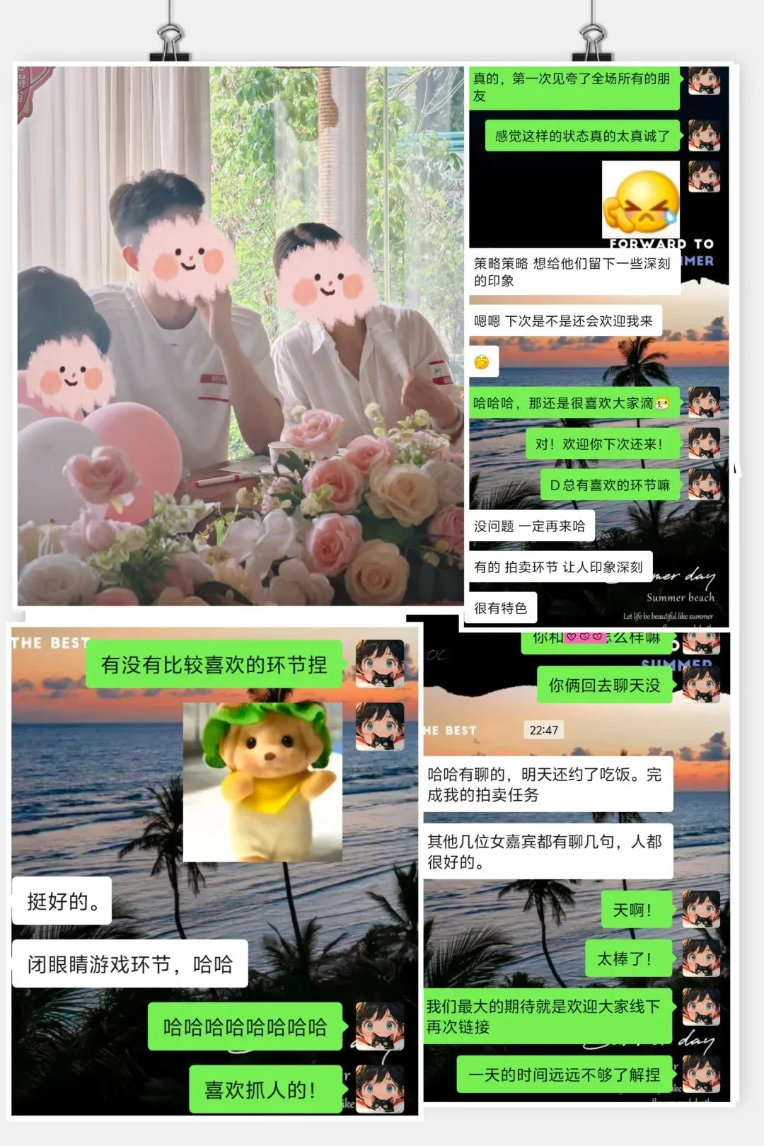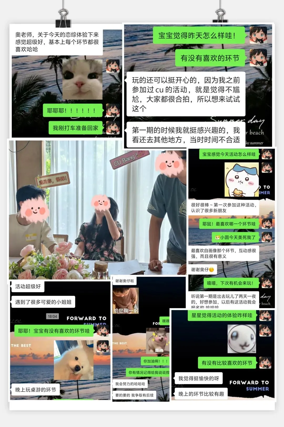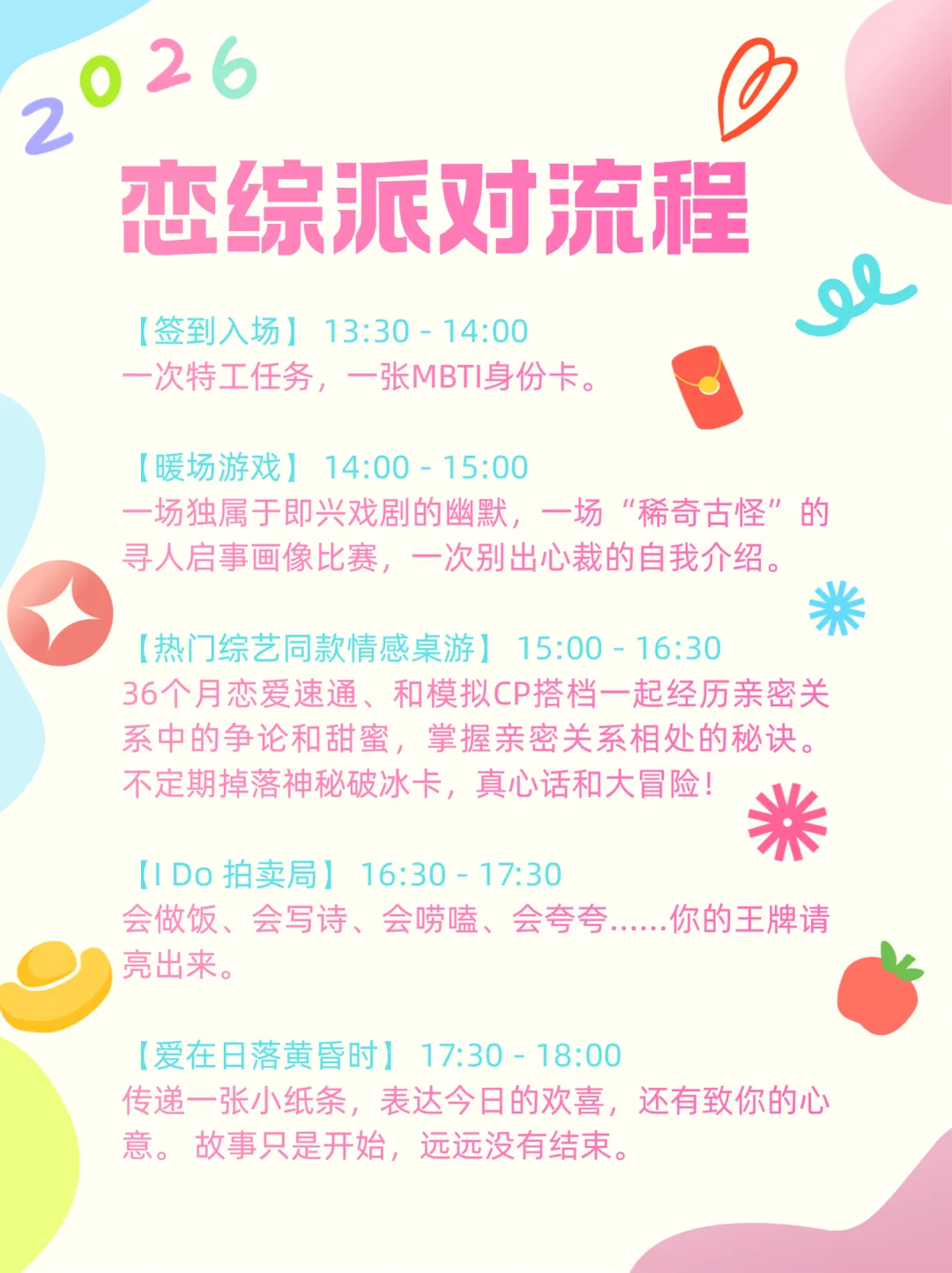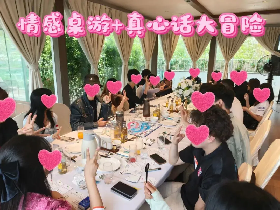 其次我们希望在活动中大家更多感受的是放松、好玩,不用担心尴尬,活动引导师全程带领,活动环节有趣,慢慢了解彼此,通过精心设计的环节表达心意。