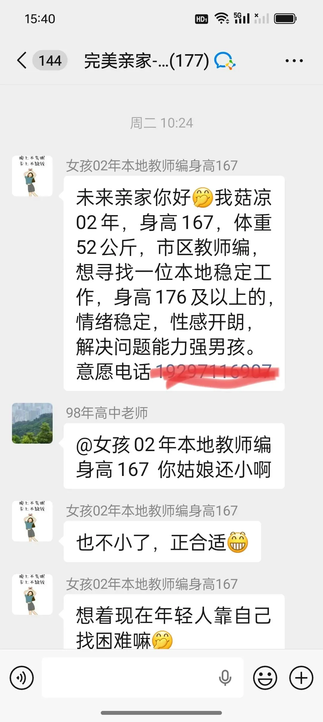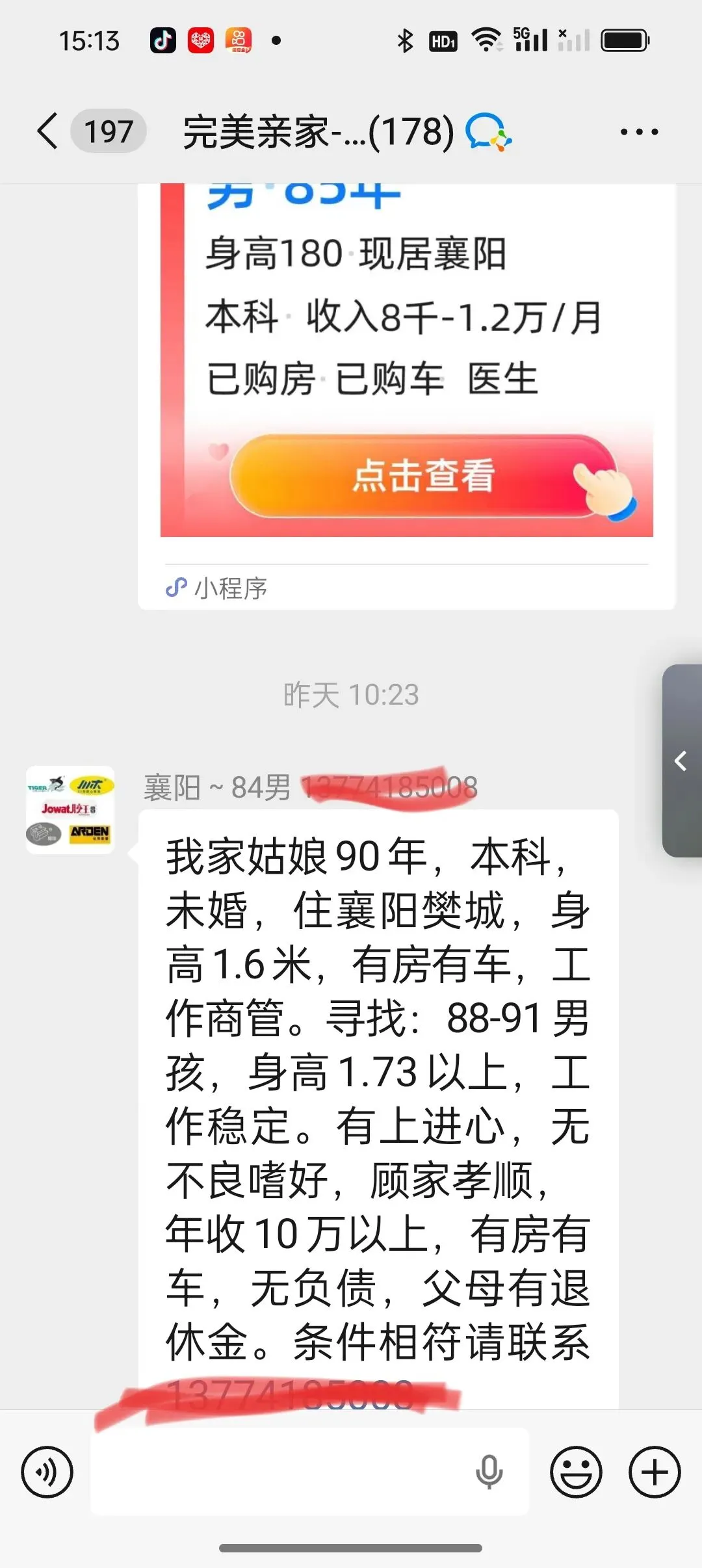 最近为亲戚家孩子找对象进了一个相亲群,群里都是为孩子相亲的家长。