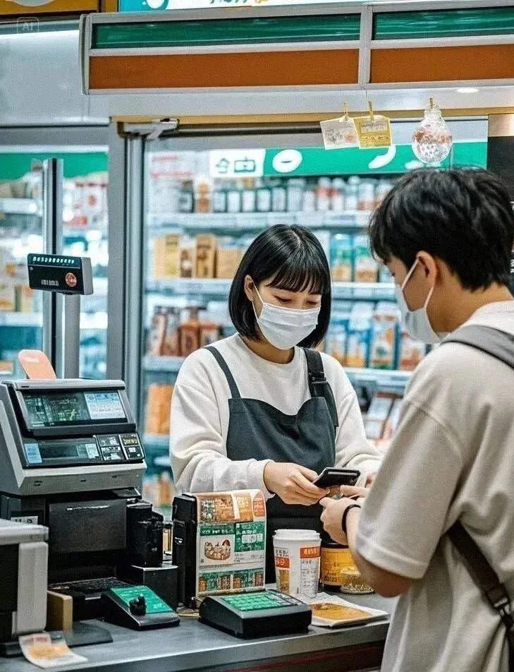 先去楼下便利店。跟女收银员说句早上好。