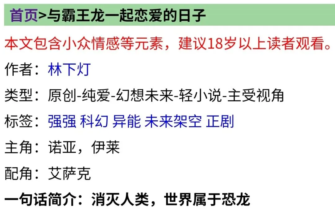 《与霸王龙一起恋爱的日子》作者:林下灯