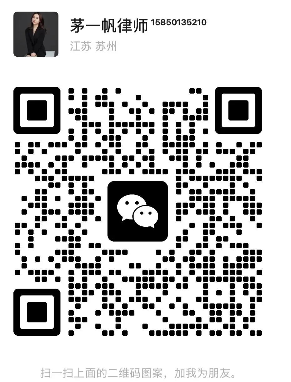 我是苏州茅一帆律师,专注婚姻家事法律事务。如果你正面临婚姻难题,可以添加如下微信,跟我一对一沟通。