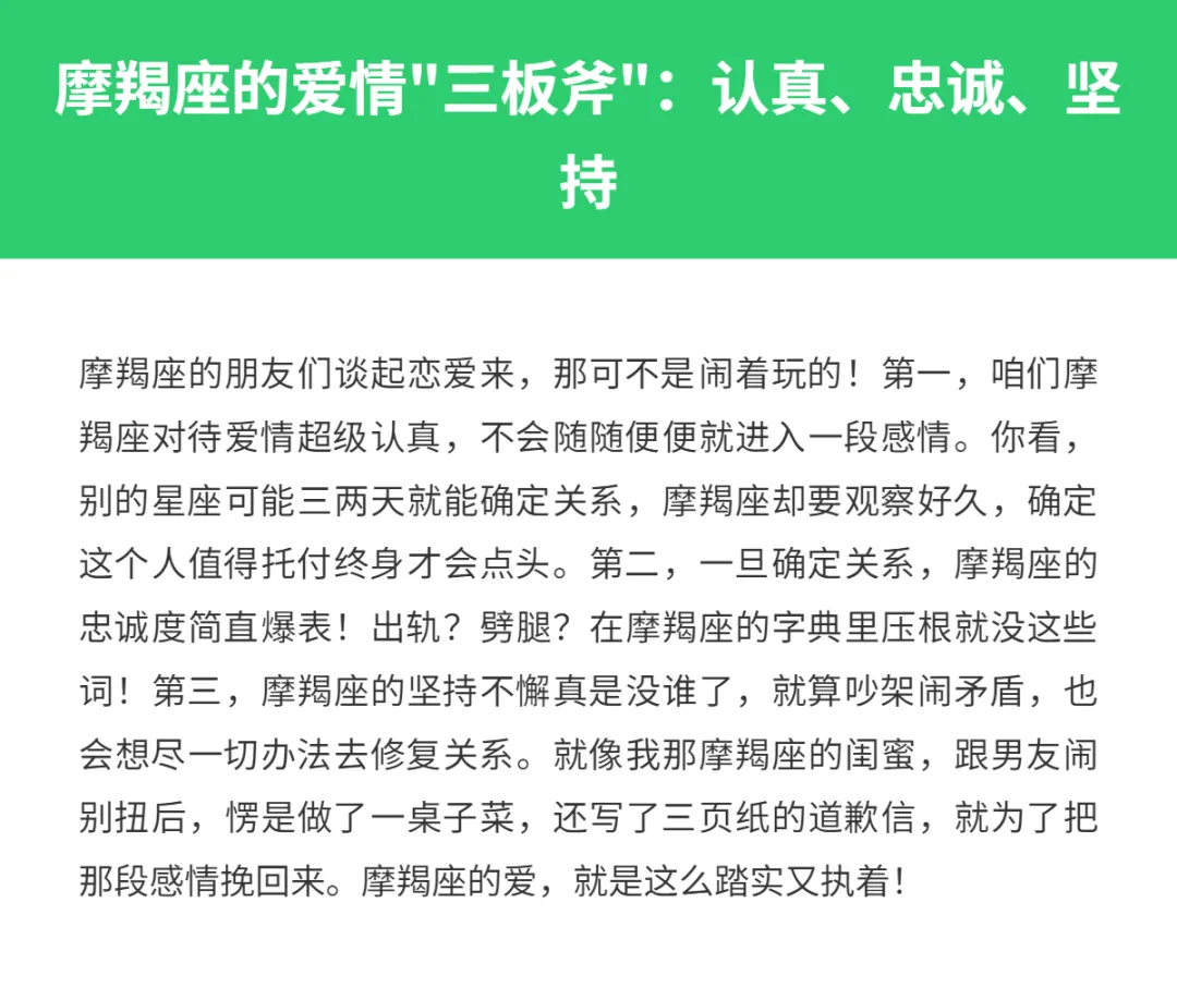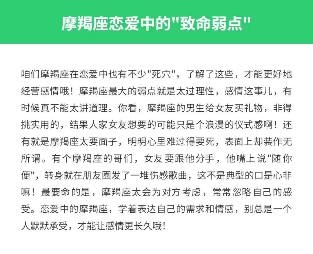 亲爱的星座朋友们,你知道吗?在十二星座中,摩羯座的恋爱观可是出了名的认真!咱们摩羯座的人啊,一旦爱上一个人,那可真是难舍难分,简直就像山羊抓住悬崖上的一根草一样,死死不松手!虽然外表看起来冷冰冰的,好像对感情不太上心,可实际上,摩羯座的内心比谁都火热,只是不善于表达罢了。今天就来聊聊,为啥摩羯座在恋爱中会这么难舍难分,以及哪些星座能让摩羯座爱得死心塌地,欲罢不能?