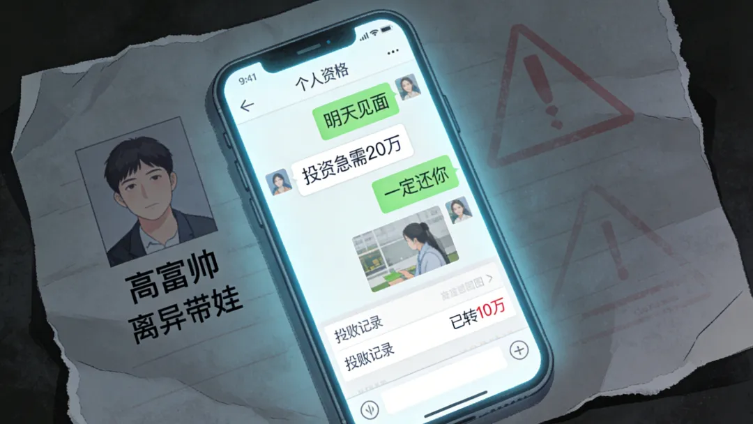 屏幕那头,是体贴入微的“成功人士”,还是精心伪装的“爱情猎手”?当婚恋交友从红线走向网线,一种以“爱”为名的犯罪正在阴影中滋生。有人为“恋人”的家人重病倾尽积蓄,有人为“伴侣”的生意周转债台高筑,直到对方失联,方才惊觉——那些甜蜜的承诺,连同你的钱财,一同蒸发在虚拟世界。